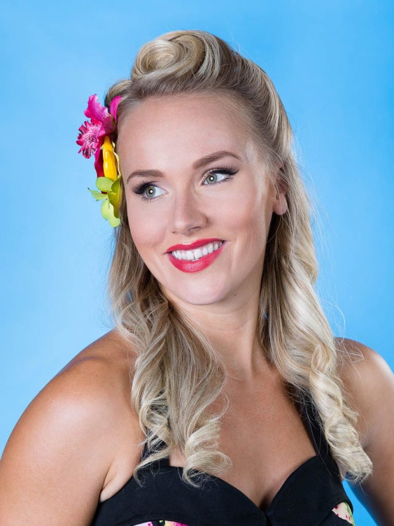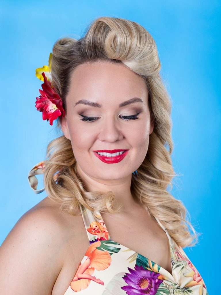 Pin-up tyyli sekä näyttävät kokonaisuudet ovat vahvuuteni. Minulta löytyy paljon kokemusta kuvauslookkien teosta ja suunnittelen mielelläni asiakkaan kanssa juuri hänelle sopivaa stailausta.